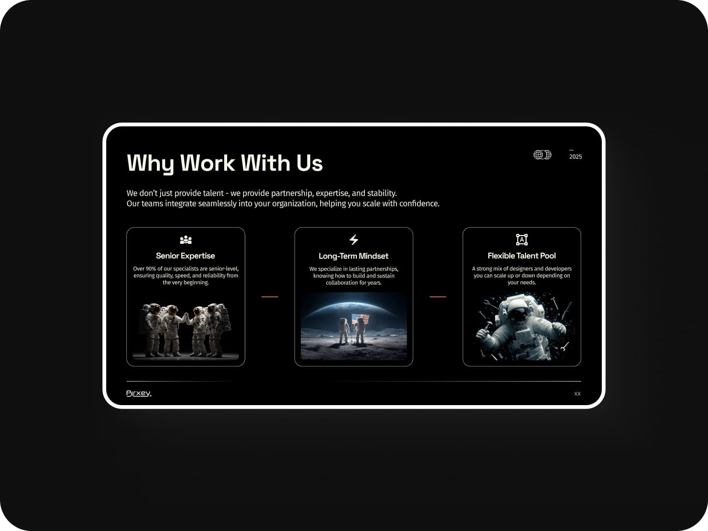 We've helped startups to international corporations, with their branding, landing page, pitch decks, social assets, and more.